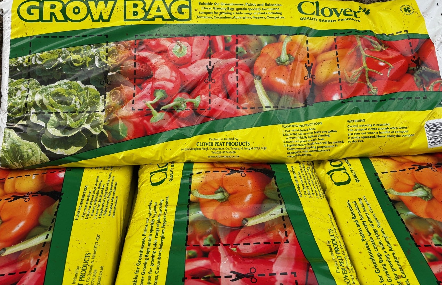 Our grow bags contain specific compost for growing a wide range of plants including, Tomatoes, Cucumbers, Strawberries, Peppers, Lettuce and Radish.